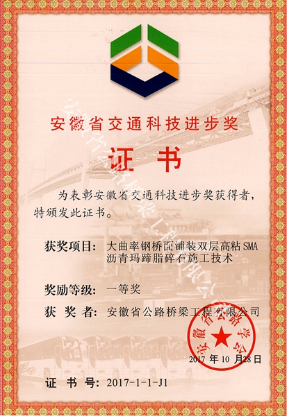近年來,公司積極實(shí)施創(chuàng)新驅(qū)動發(fā)展戰(zhàn)略,充分依托省級技術(shù)中心,重點(diǎn)立足新設(shè)備、新材料、新工藝運(yùn)用,大力推進(jìn)科技創(chuàng)新,持續(xù)加強(qiáng)科技成果轉(zhuǎn)化,以科技創(chuàng)新助推企業(yè)轉(zhuǎn)型發(fā)展、跨越發(fā)展、高效發(fā)展,取得了良好成績。此次兩項成果榮獲省公路學(xué)會交通科技進(jìn)步獎一等獎,充分體現(xiàn)了在公路工程特級資質(zhì)新發(fā)展平臺上公司科技創(chuàng)新實(shí)力的進(jìn)一步增強(qiáng)。