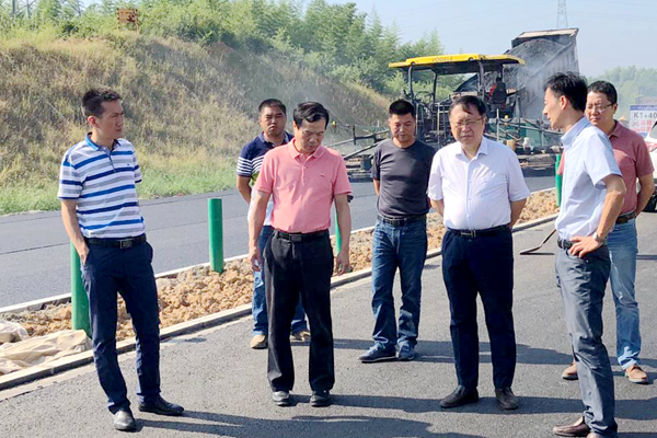 8月8日,省交控集團(tuán)總經(jīng)理錢(qián)東升、建管部部長(zhǎng)蘇新國(guó)一行蒞臨廣寧高速路面項(xiàng)目檢查指導(dǎo)工作,廣寧高速項(xiàng)目辦主任方昱陪同。