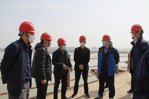 章后忠、張玉強(qiáng)一行詳細(xì)了解了項目疫情防控及復(fù)工進(jìn)展情況,實地檢查了澮河特大橋樁基施工。
