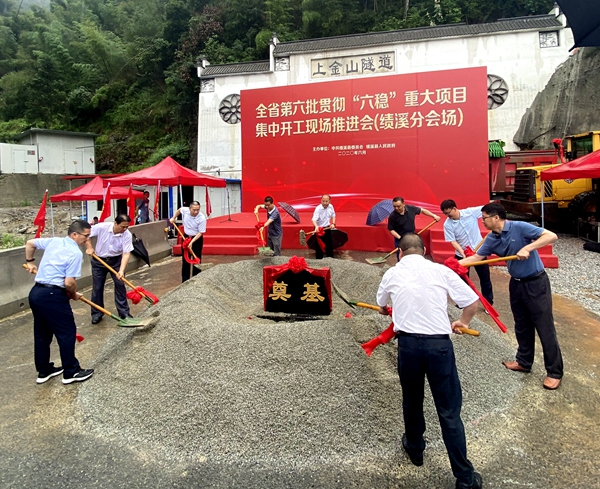 6月19日,安徽省第六批貫徹“六穩(wěn)”重大項(xiàng)目集中開工現(xiàn)場推進(jìn)會(huì)(績溪分會(huì)場)在公司承建的S456績溪至譚家橋公路上金山隧道項(xiàng)目舉行,該項(xiàng)目開工儀式也同期舉辦??兿h委書記黃德泉現(xiàn)場宣布全縣第六批貫徹“六穩(wěn)”重大項(xiàng)目集中開工??h委常委、常務(wù)副縣長胡旭華發(fā)表講話,公司黨委副書記、總經(jīng)理錢申春應(yīng)邀出席并致辭??h政府副縣長、縣經(jīng)開區(qū)管委會(huì)主任劉林發(fā)主持儀式。