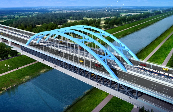繁華大道橋是安徽省第一座軌道與城市道路共線的大跨度橋梁,軌道位于雙層橋梁的上層,采用了鋼桁架+拱協(xié)同工作的結(jié)構(gòu)體系,國內(nèi)屬于首次采用,在項(xiàng)目技術(shù)應(yīng)用上具有顯著的創(chuàng)新性。