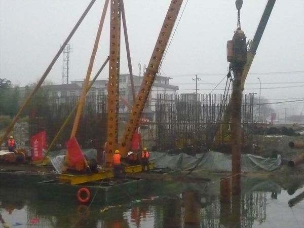 宋斗灣路項目進入打設河中鋼管樁階段