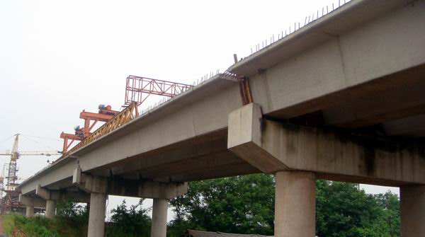 江南的7月是個(gè)多雨的季節(jié),自進(jìn)入7月以來,青弋江項(xiàng)目遇上連日暴雨,長江水位猛漲,青弋江水位也隨長江水位增高和上游陳村水庫泄洪而增高,一度超過了98年同期水位,致使對(duì)岸紅星圩大堤被縣防指封堵,東岸施工平臺(tái)被淹,被迫停工半月之余。再加上受洪水、停電、停水等不利因素的影響,項(xiàng)目生產(chǎn)出現(xiàn)困難,但項(xiàng)目部及時(shí)調(diào)整施工方案和對(duì)策,不等不靠,采取靈活方案,積極進(jìn)行施工生產(chǎn):主橋不能干就干引橋,白天不能干就晚上干,停電就自己發(fā)電,沒有水就挑水或買水……努力克服重重困難,保工期、保質(zhì)量。到月底即7月31日止,共完成32片30M箱梁的安裝,主橋已完成5#墩的7#塊、6#墩的5#塊的澆筑任務(wù),預(yù)計(jì)8月底能完成主橋全跨的合攏任務(wù)。9月份全橋?qū)⑦M(jìn)入上部橋面系的施工,全橋預(yù)計(jì)在10月底全部完工。