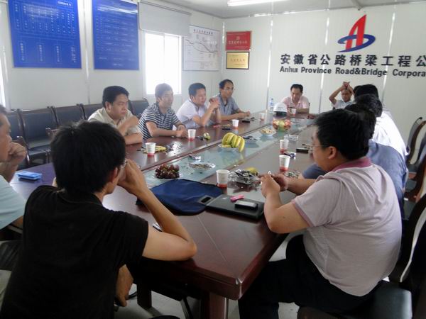 檢查組一行首先來到項目部召開會議聽取我部工作匯報,并進行內(nèi)業(yè)資料檢查。項目經(jīng)理王遠(yuǎn)勝向檢查組一行匯報了我部抗擊715洪災(zāi)和災(zāi)后重建工作開展情況??偣顷痪臀也繕蛄菏┕べ|(zhì)量控制體系、流程和施工進度進行匯報。試驗室、質(zhì)檢部分別向檢查組匯報了我部試驗工作、質(zhì)量控制和內(nèi)業(yè)資料完善等情況。