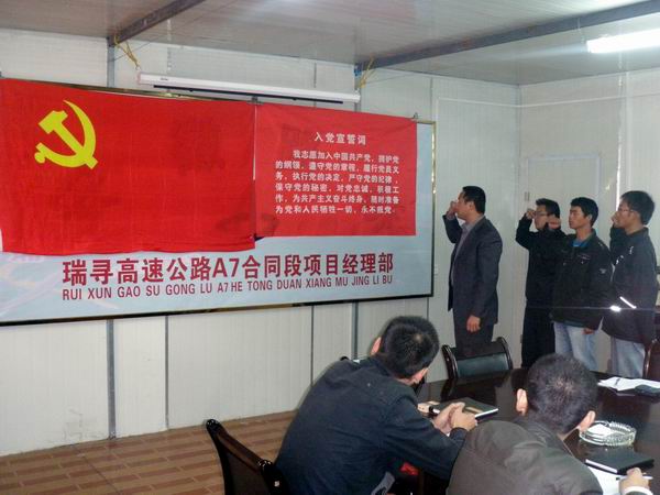 會議第三項議程是由項目經(jīng)理劉大雷結合項目辦第二階段目標提出了我標段黨支部在下一階段中的任務和目標要求。劉經(jīng)理指出,在下一階段,黨支部要緊緊圍繞項目辦第二階段目標,深入一線,提高黨員的政治覺悟,起到模范帶頭作用,以“嚴要求、高標準”樹立黨員風范,促進施工生產(chǎn)。