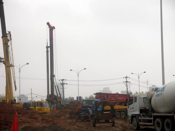 目前,項(xiàng)目部已具備辦公條件,主要管理人員已基本到位,道排、橋梁、樁基、擋墻等施工隊(duì)伍已進(jìn)場(chǎng)施工,并于75,完成首根樁基的澆筑。項(xiàng)目部在人員不足,桿管線、污水燃?xì)夤艿厘e(cuò)綜復(fù)雜等不利因素的影響下,利用現(xiàn)有條件充分挖掘工作面。截止717,已完成駐地建設(shè),懷寧路下穿橋支護(hù)咬合樁33根、下穿橋樁基28根,翡翠路上跨橋鉆孔樁22根,棄土方14600方、溝槽開挖2840方,回填2180方,雨污水管道埋設(shè)約730,累計(jì)完成產(chǎn)值約1000萬元。