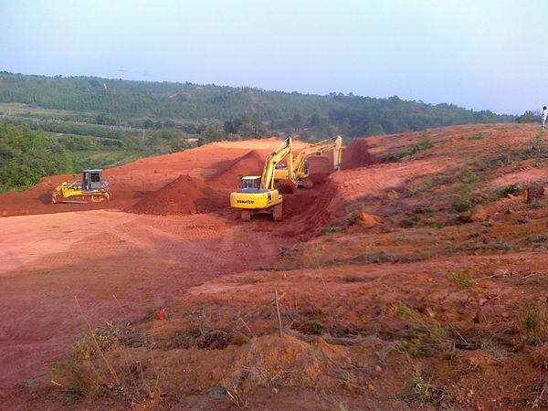 我部施工標(biāo)段全長(zhǎng)28公里,項(xiàng)目部將在永豐和吉水兩縣分別設(shè)立一座水穩(wěn)拌合站及一座瀝青拌和站。按照業(yè)主要求,8月份完成水穩(wěn)拌合站架設(shè),10月份完成瀝青拌合站架設(shè)。項(xiàng)目部已經(jīng)定出倒排工期計(jì)劃表。目前在永豐縣的“一白一黑”兩站已經(jīng)確定,水穩(wěn)拌和站已具備架設(shè)及備料條件。吉水縣我標(biāo)段所處位置多為山地,且大部分為公益林,經(jīng)過慎重選擇后,選定了一塊約50畝的山林地作為兩站場(chǎng)地。但此處土方量較大,場(chǎng)地整平土方量經(jīng)測(cè)算約8萬(wàn)方。項(xiàng)目部將充分利用晴好天氣,加班加點(diǎn),計(jì)劃10個(gè)工作日完成場(chǎng)地整平。