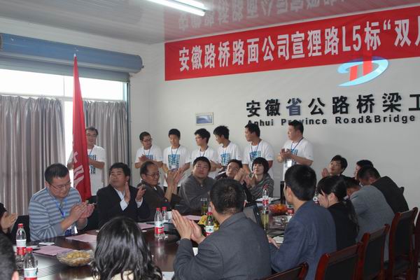 副總經(jīng)理陳智代表公司向全體參會(huì)人員宣讀了皖路橋路面辦〔2012〕5號(hào)文件——《關(guān)于開(kāi)展宣貍改建工程L5標(biāo)“雙月會(huì)戰(zhàn)”勞動(dòng)競(jìng)賽的通知》;路面公司工程部長(zhǎng)王小杰、總經(jīng)濟(jì)師袁青嶺分別詳細(xì)闡述了活動(dòng)的實(shí)施方案和具體獎(jiǎng)勵(lì)措施。